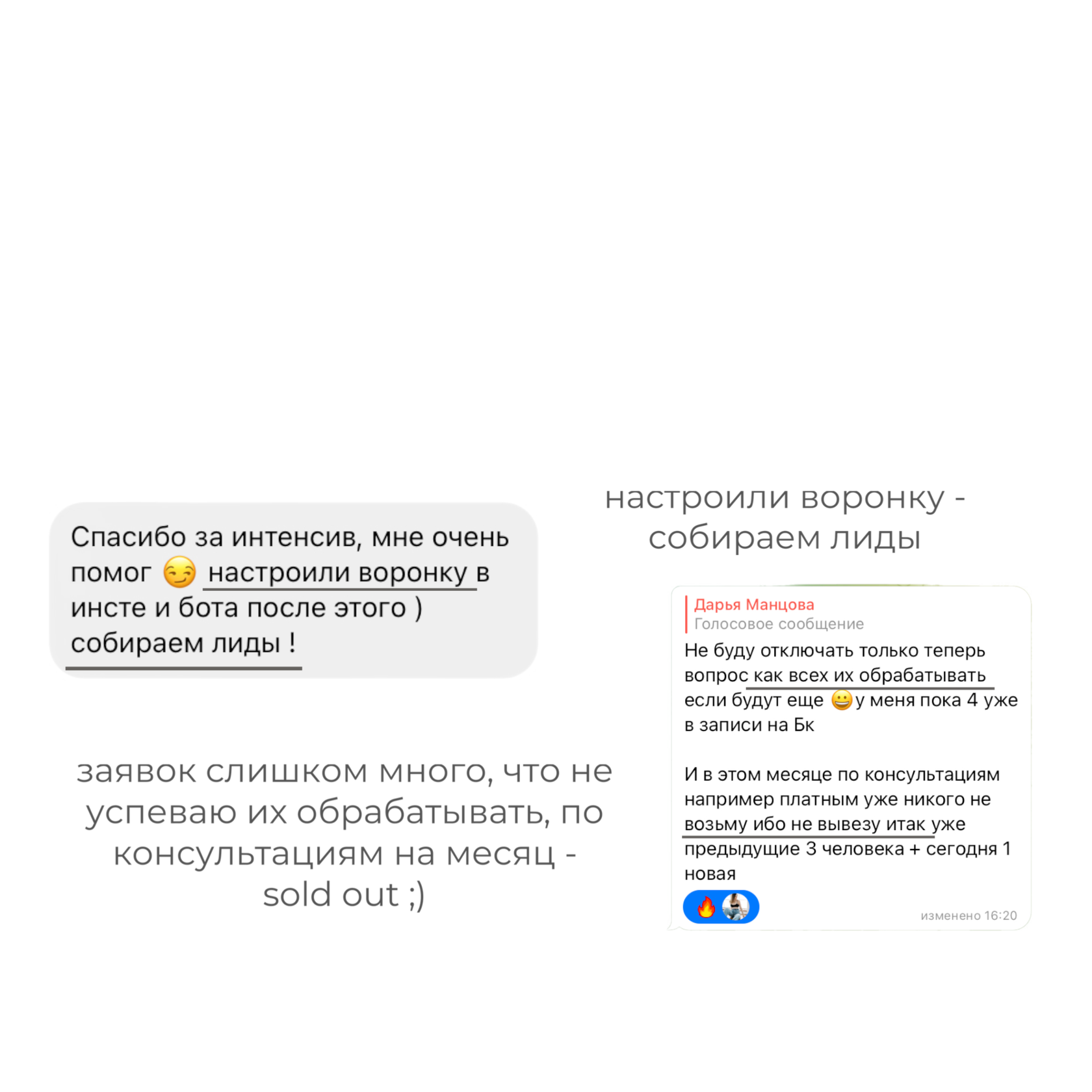 Мои воронки работают именно за счет большого количества касаний и использования эмоциальных триггеров в подаче.