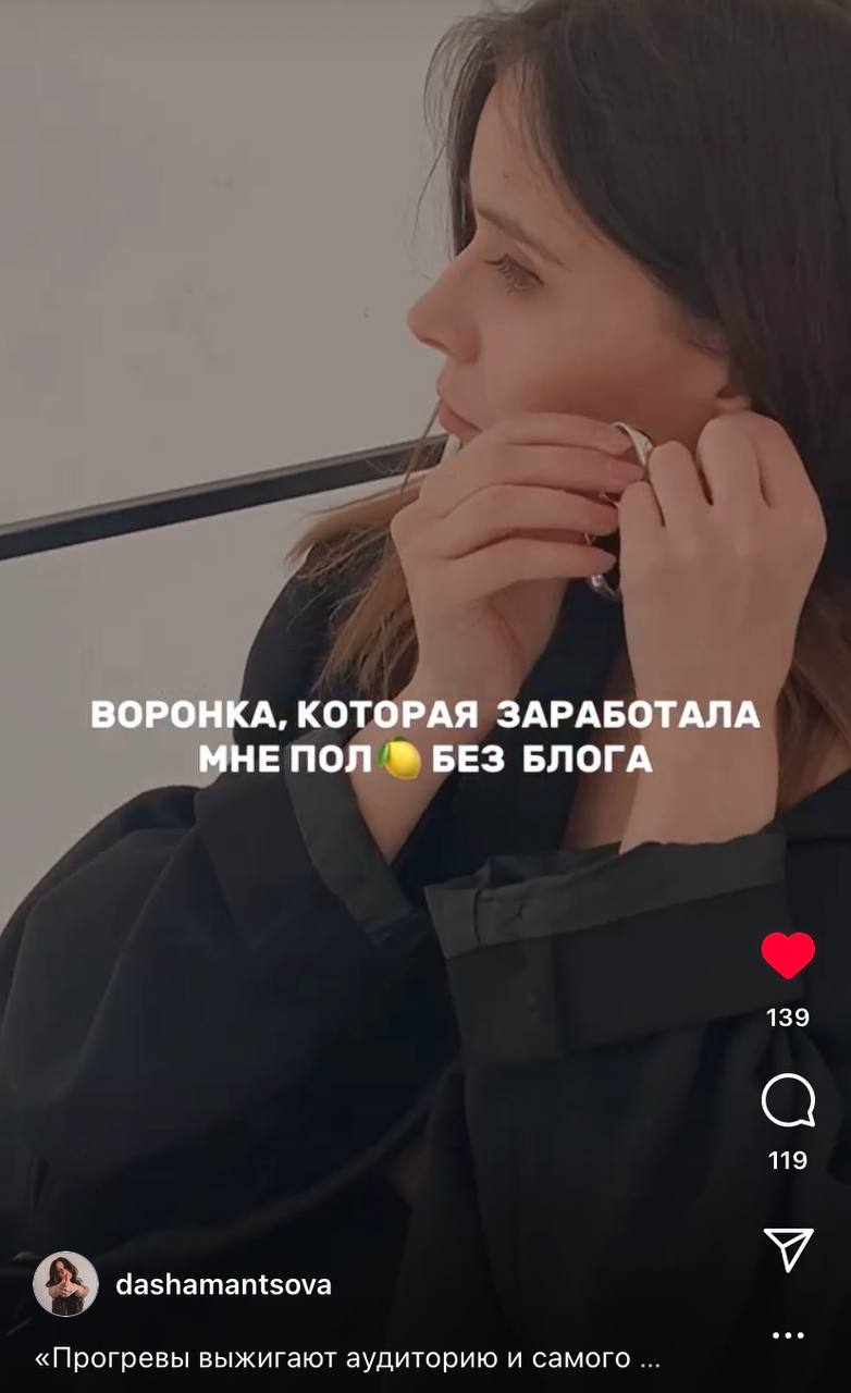 Либо сделали популярную в инсте воронку – рилс – актуальное и недоумеваем почему же заявки не плывут к нам как из рога изобилия.